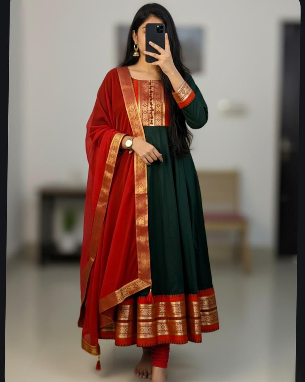Royal Zari Kanchi Silk Cotton Kurti Set with Contrast Dupatta